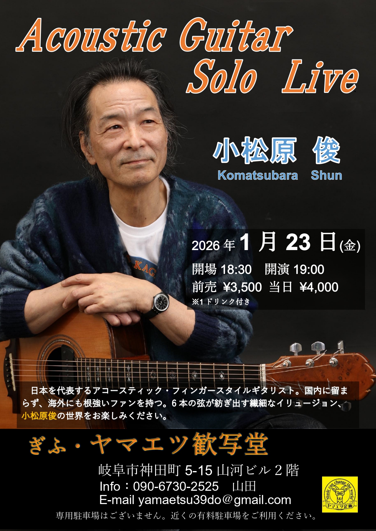 6本の弦が紡ぎ出す繊細なイリュージョン、小松原俊の世界をお楽しみください。